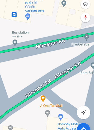 He knew as little as us about the bus we wanted to take, but unlike us at least he had a handle on the language. The area we got to, with the information we had, was a seemingly massive road interchange. It was probably just a road junction, but instead of two roads crossing, we could only see four roads meeting. Each of these roads had two carriageways, but each carriageway had at least three lanes of traffic and an outer and inner squeeze lane for scotters and bikes. I can’t begin to truly paint the picture, but our driver pulled up and stopped and asked, jumped back in and crossed the five lanes of traffic, including the squeeze lanes. Its hard to say now if any two lanes on the this carriageway were actually travelling in the same direction, it’s impossible to stop yourself trying to impose a structure where there is none. Onto another carriageway and next… I say next, but in fact none of this appeared to happen sequentially at the time. So next, he then joined what we now saw was the single carriageway four lane roundabout (ignore the notional Google arrows indicating the flow of traffic) and chose to go contraflow in one of the ‘lanes’ to get to one of the other joining four lane carriageways. We were no longer in the ‘Mirzapur Road Triangle’ but the BAPS Circle. Dante came to mind.