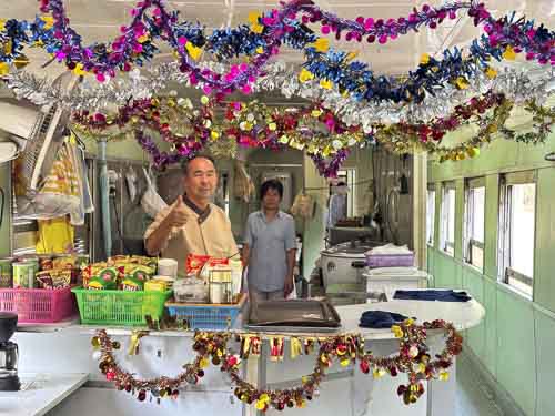 Now it’s just after dawn in the restaurant car. It’s fresh with all the windows open, but what a way to travel. Fresh air and unhindered views as we climb through the jungle up to Chiang Mai.